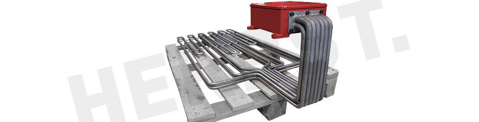 These Over-the-Side Immerison heaters are suitable for salt bath applications. The immersion heaters are equipped with tubular heating elements Ø 16 mm and a total output of about 35 kW each.
